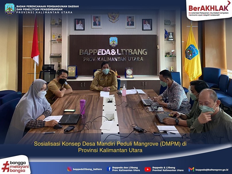 Tanjung Selor - Bappeda dan Litbang Provinsi Kalimantan Utara bersama dengan GIZ PROPEAT menggelar sosialisasi konsep Desa Mandiri Peduli Mangrove (DMPM) di Provinsi Kalimantan Utara. Demi mencegah penyebaran virus Covid-19, kegiatan yang dilaksanakan pada Senin (07/03/2022) ini dihadiri terbatas oleh pejabat Bappeda Litbang Kaltara dan GIZ PROPEAT, sedangkan tamu undangan lainnya mengikuti kegiatan secara virtual.
