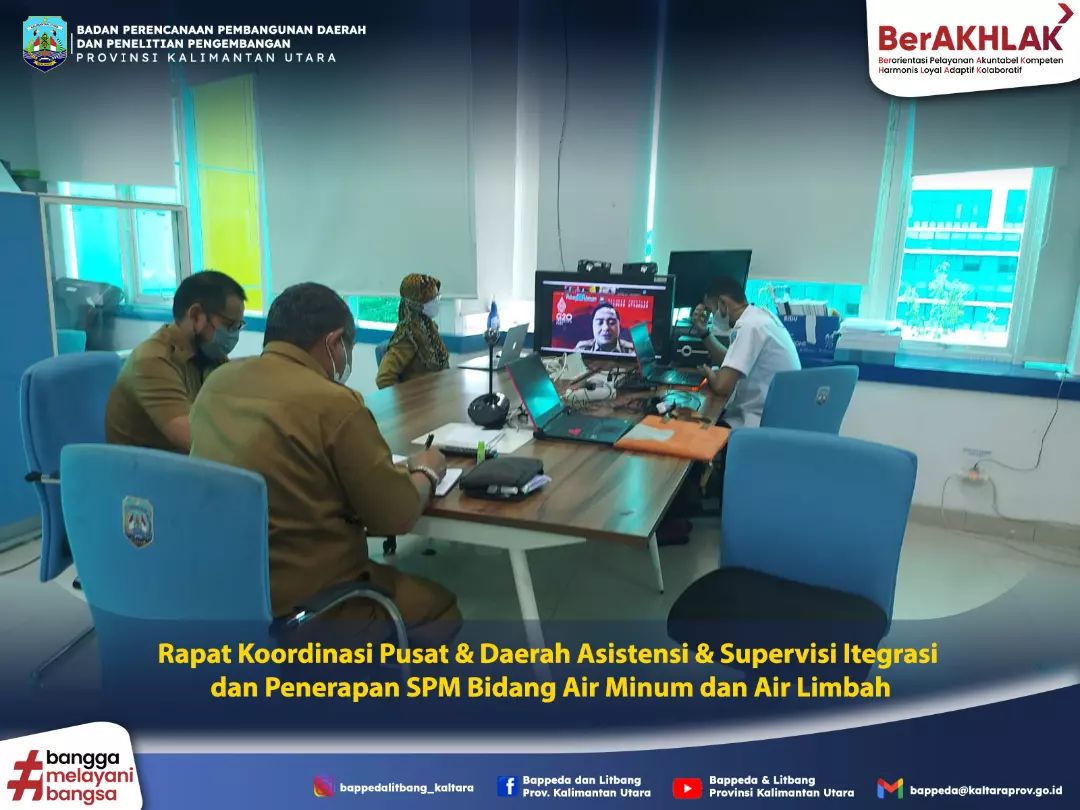 Tanjung Selor - Bappeda dan Litbang Prov. Kalimantan Utara melalui Bidang Prasarana dan Permukiman Wilayah mengikuti kegiatan Rakor Pusat dan Daerah Asistensi dan Supervisi Integrasi dan Penerapan SPM Bidang Air Minum dan Air Limbah secara daring yang diselenggarakan oleh Ditjen Bina Pembangunan Daerah Kemendagri pada hari Senin, 11 April 2022.