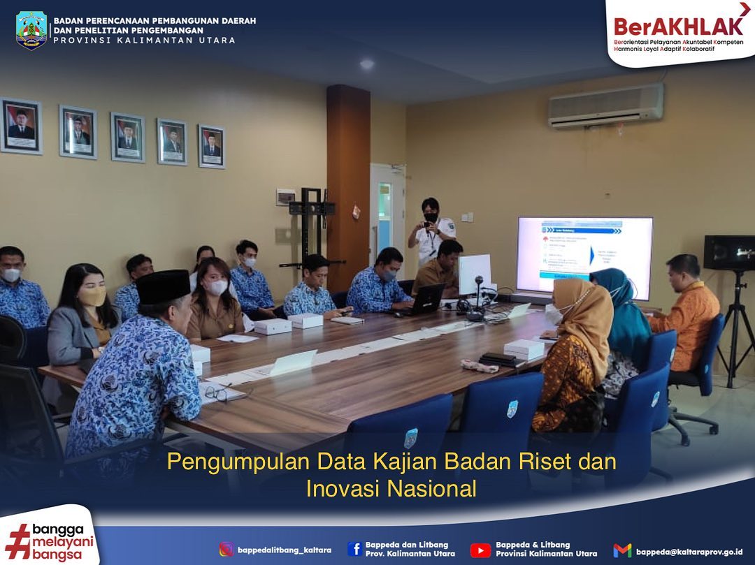 Tanjung Selor - Sekretaris Bappeda dan Litbang Prov. Kalimantan Utara menerima kunjungan BRIN bersama dengan BPS. Kunjungan ini dalam rangka FGD Pemetaan Isu terkait Praktek Pembangunan Ekonomi Hijau di Provinsi Kalimantan Utara.