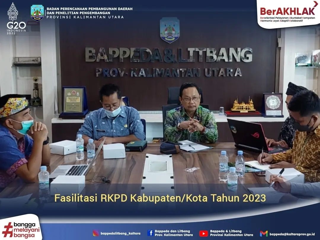 Tanjung Selor - Bertempat di Ruang Rapat Gunung Putih, Bappeda dan Litbang melaksanakan Fasilitasi RKPD Kabupaten/Kota Tahun 2023 secara luring. Kegiatan ini dipimpin oleh Kepala Bidang Pengkajian Perencanaan Daerah dan Pengendalian Pembangunan, diikuti oleh Dinas Pendidikan dan Kebudayaan, Dinas Kelautan dan Perikanan, Dinas Perindagkop, Biro Pembangunan, Kepala Bidang serta Perencana Ahli Muda lingkup Bappeda dan Litbang selaku tim fasilitasi.