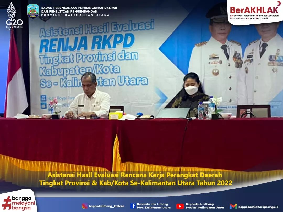 Tarakan - Bappeda dan Litbang Provinsi Kalimantan Utara menyelenggarakan kegiatan Asistensi Hasil Evaluasi Rencana Kerja (Renja) Tingkat Provinsi dan Kab/Kota Se-Kalimantan Utara Tahun Anggaran 2022 secara luring di Hotel Royal Pada tanggal 6 s.d 7 Juli 2022.