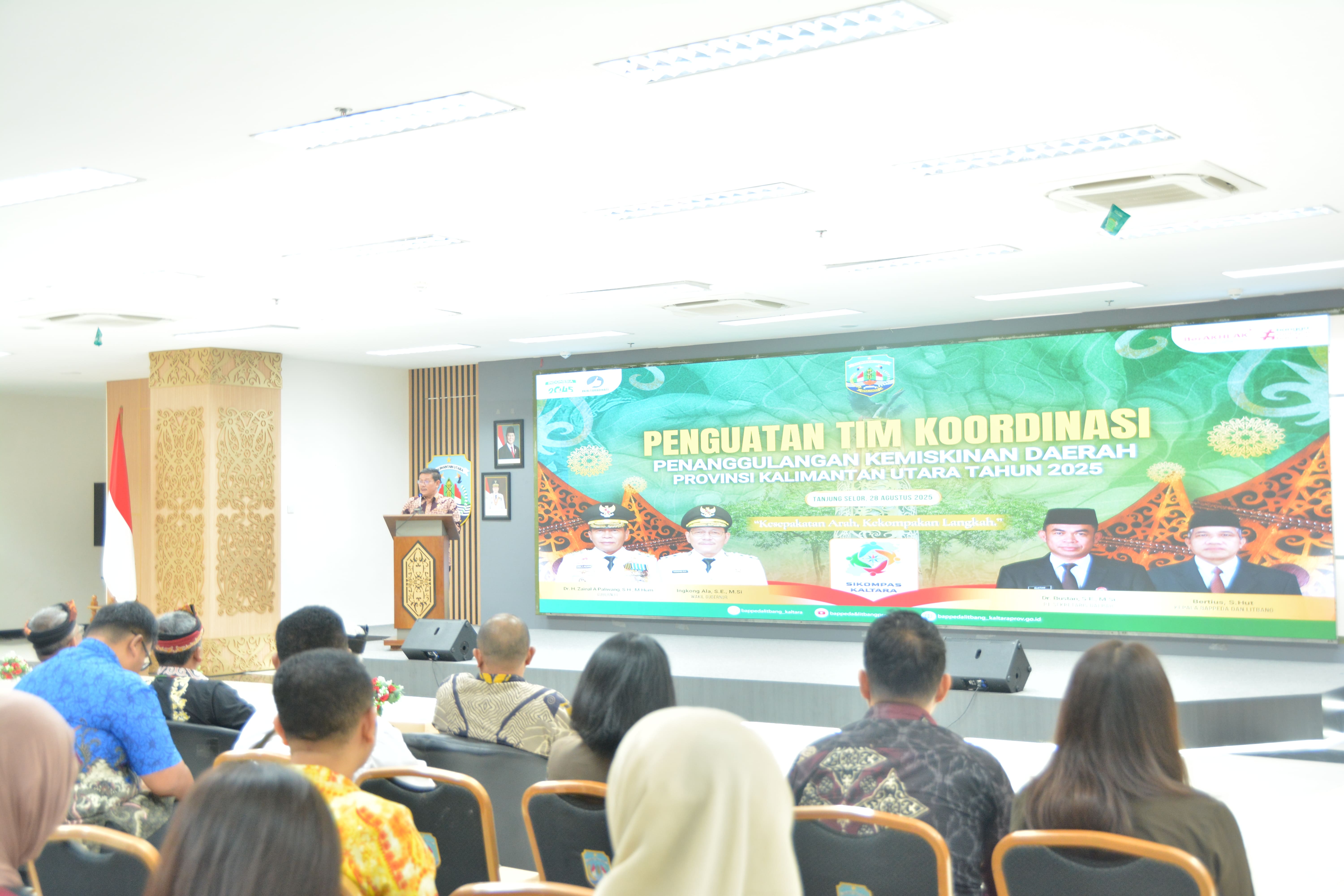 Tanjung Selor - Wakil Gubernur Kaltara, Ingkong Ala, S.E., M.Si membuka secara resmi Rapat Penguatan Tim Koordinasi Penanggulangan Kemiskinan Daerah (TKPKD) Provinsi Kalimantan Utara, yang dilaksanakan di Ruang Aula Lantai 1 Kantor Gubernur Kaltara, Kamis (28/8).