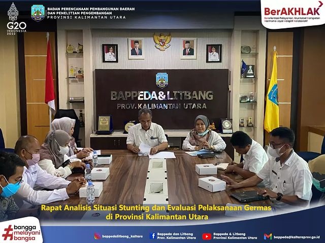 Tanjung Selor - Bappeda dan Litbang Kaltara melaksanakan Rapat Analisis Situasi Stunting dan Evaluasi Pelaksanaan Germas Provinsi Kalimantan Utara pada hari rabu tanggal 15 September 2022 di Kantor Bappeda dan Litbang Kaltara.