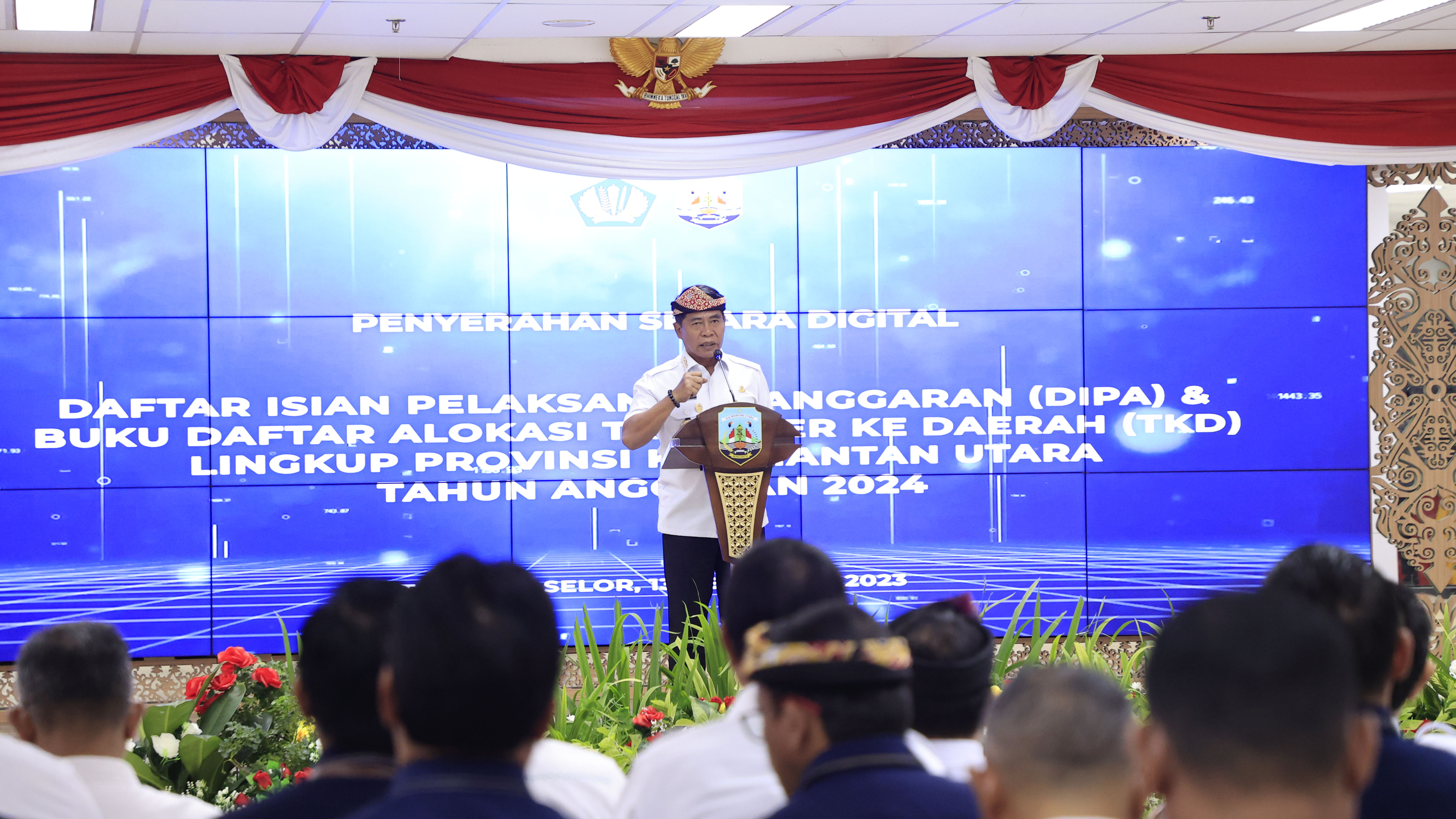 Tanjung Selor - Gubernur Kalimantan Utara (Kaltara) DR. (H.C.) H. Zainal A. Paliwang, M.Hum., melantik Dr. Bustan, SE., M.Si., sebagai Penjabat (Pj) Wali Kota Tarakan Tahun 2024 pada Jum’at (1/3).