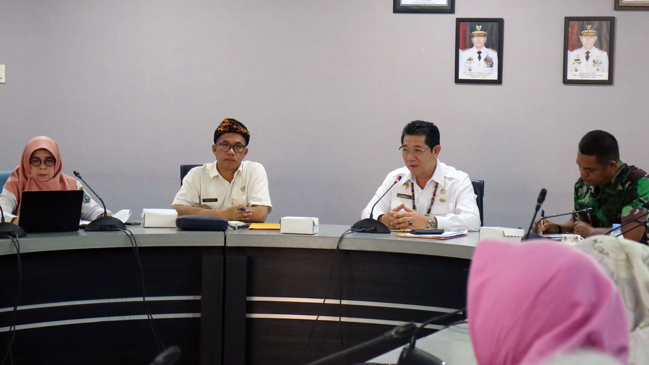 Tanjung Selor - Wakil Gubernur (Wagub) Kalimantan Utara (Kaltara) yang juga Ketua Tim Percepatan Penurunan Stunting (TPPS) Provinsi Kaltara Dr. Yansen TP, M.Si., memimpin Rapat Evaluasi Tahun 2023 dan Penyusunan Program Tahun 2024 TPPS di Ruang Rapat Benuanta Lantai I Kantor Gubernur Kalimantan Utara, Rabu (31/1).